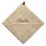 Onze Lukkies Badcape met naam geborduurd is een perfect kraamkado. Met zijn royale afmetingen van 80 x 80 cm en vervaardigd uit 100% zacht katoen, is deze badcape of wikkeldoek een warme omhelzing van de baby na elk badje! De badcape is leverbaar in 3 kleuren. Cream (een beige/neutrale tint), Stonegreen (een grijs/groene tint) en Pinkstone (een oud roze tint). Voor elk wat wils dus! De naam wordt binnen het frame 100 x 50 mm geborduurd, dus de borduring van 1 regel wordt maximaal 10 cm breed en totaal maximaal 5 cm hoog.